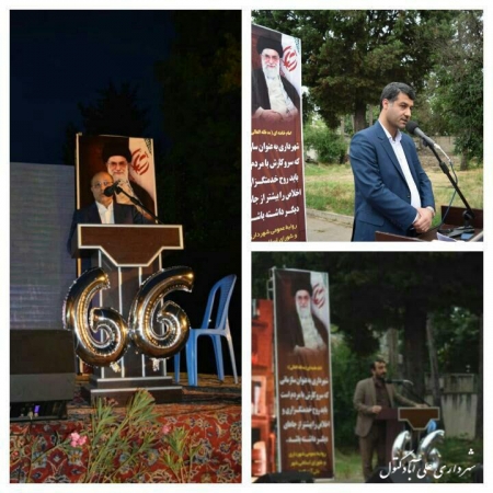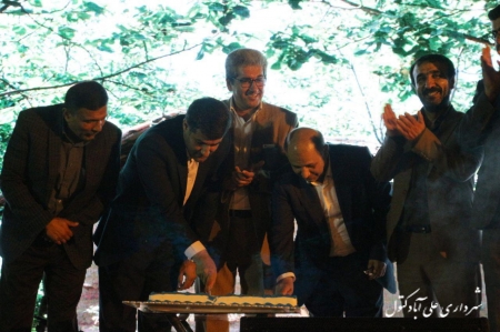 برش نمادین کیک ۶۶ امین سالروز تاسیس شهرداری علی آباد کتول توسط دکتر قره خانی، و دکتر اسفندیاری پور و اجرای مراسم آتش بازی در جشن روز علی آباد کتول