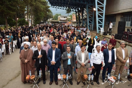 حضور چشمگیر شهروندان در جشن روز علی آباد کتول و آغاز مراسم با قرائت قران،سرود جمهوری اسلامی ایران و قرائت زیارت خاصه امام رضا(ع)