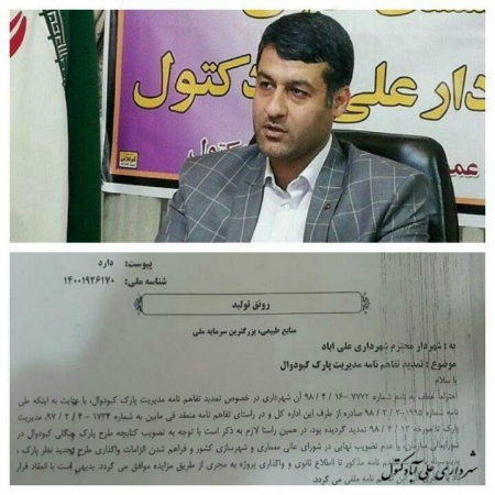 شهردار علی آباد کتول از تمدید قرارداد مدیریت پارک جنگلی کبودوال بین شهرداری و اداره کل منابع طبیعی استان طی نامه مورخه ۱۳۹۸/۴/۲۳ آن اداره کل تا اطلاع ثانوی (تصویب پروژه تله کابین در شورایعالی شهرسازی و معماری و فراهم شدن شرایط واگذاری مدیریت پارک به مجری جدید از طریق مزایده ) خبرداد.