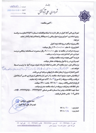 آگهی و اسناد مناقصه اجرای پروژه دیوار سنگی خیابان نوده