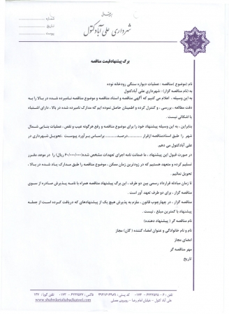 به گزارش روابط عمومی : شهرداری علی آباد کتول در نظر دارد پروژه اجرای دیواره سنگی رودخانه نوده را به پیمانکار واجد شرایط واگذار نماید .