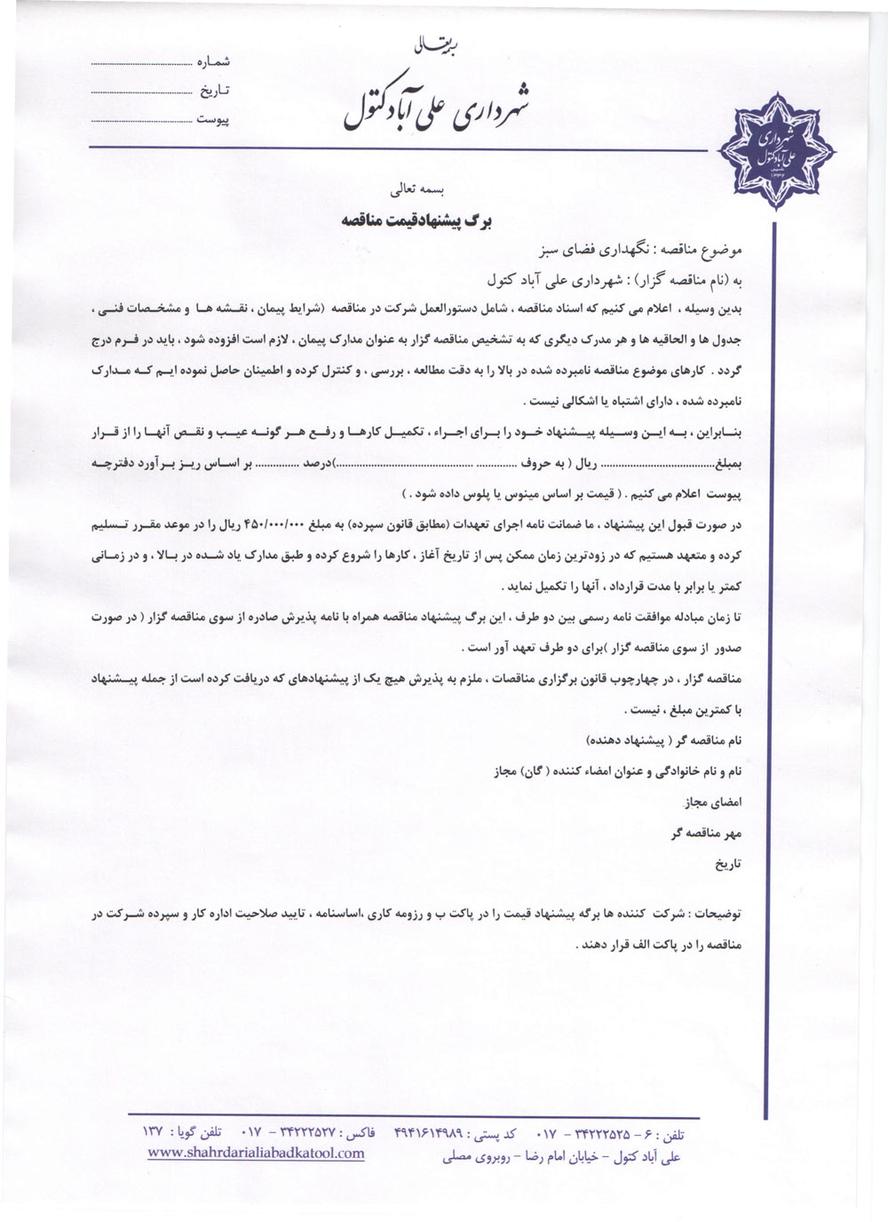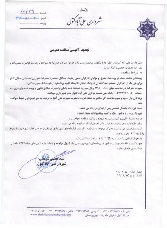 آگهی و اسناد مناقصه نگهداری فضای سبز شهرداری