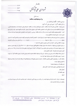 شهرداري علي آباد كتول در نظر  دارد نگهداری فضای سبز را از طریق شرکت های واجد شرایط با رعایت قوانین و مقررات و مقررات بصورت حجمی واگذار نماید .