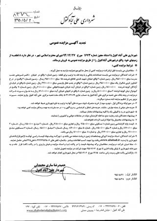 آگهی و اسناد تجدید مزایده املاک شهرداری علی آباد کتول