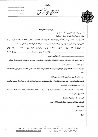 شهرداري علي آباد كتول   در نظر دارد 8 قطعه از  زمینهای خود  واقع درشهرعلی آبادکتول  را  از طريق مزايده عمومی به  فروش برساند.