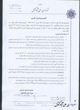 مزايده واگذاري1200مربع زمين جهت احداث رستوران سنتي در پارك جنگلي كبودوال
