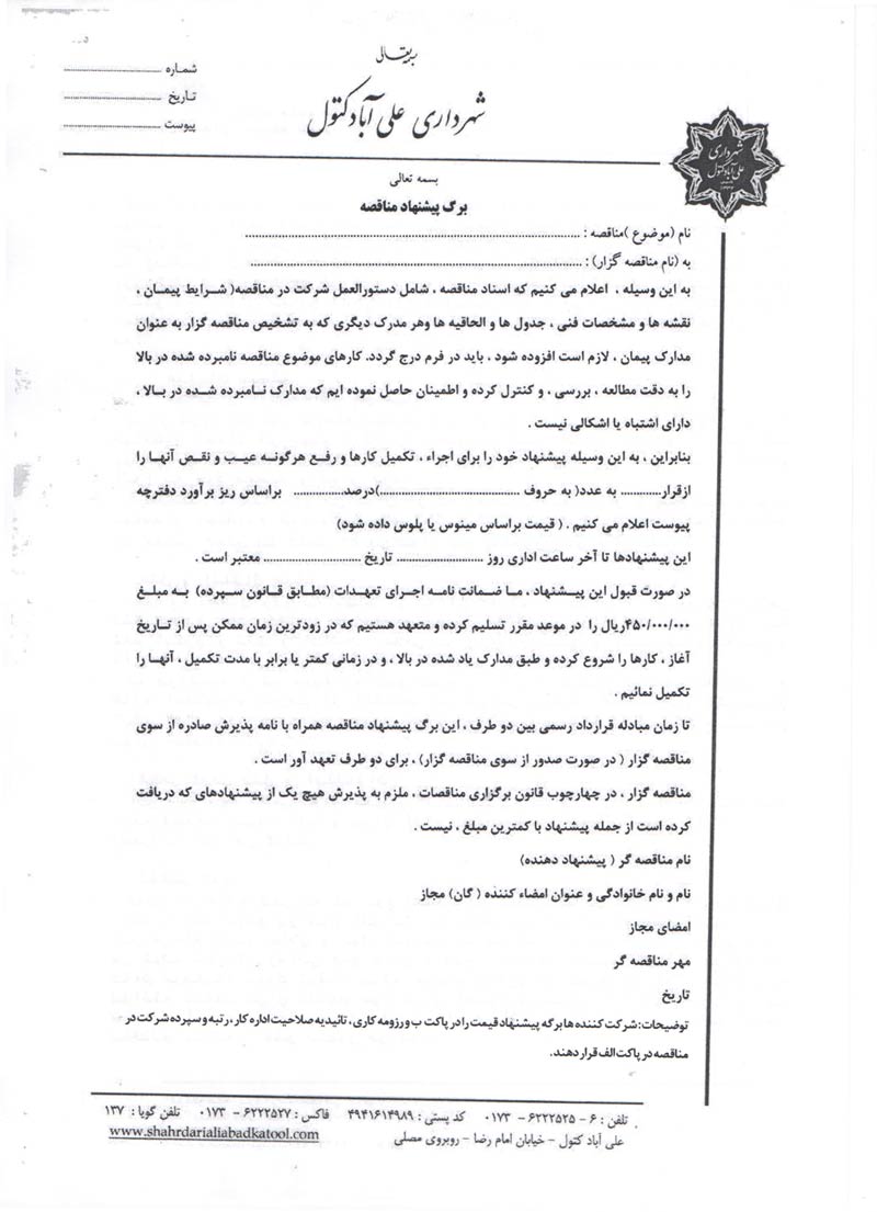 شرکت کننده محترم : کلیه اوراق و پاکات باید مهر شرکت به همراه امضاء صاحبان امضاء داشته باشد