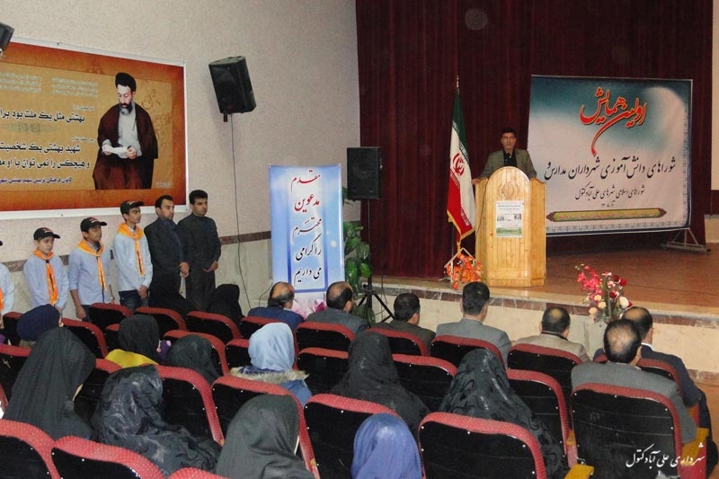 در این همایش پس از تلاوت قرآن کریم و پخش سرود جمهوری اسلامی ایران ، در ابتدا جناب آقای علمشاهی رئیس آموزش و پرورش به حاضرین خوش آمد گفتند و اهداف همایش را بر شمردند و از شورای اسلامی شهر عل آباد کتول تشکر نمودند ، پس از آن جناب آقای مهندس پاکدامن رئیس محترم شورای اسلامی شهر علی آباد کتول ، ضمن خوش آمد به حاضرین ، آموزش و پرورش و مدارس را بستری مناسب جهت ارتقاء فرهنگ جامعه داشتند و شوراهای دانش آموزی را محلّی جهت تمرین و ممارست جهت تصمیم گیری و تصمیم سازی بیان داشتند و این همایش را فضایی مناسب جهت ارتقاء مهارتهای شهروندی دانستند در ادامه چند تن از دانش آموزان به نمایندگان از طرف شهرداران مدارس به بیان دیدگاههای خود پرداختند و پس از آن جناب آقای وطنی مدیر کل محترم آموزش و پرورش ضمن تشکر از برگزار کنندگان این همایش شوراهای دانش آموزی را به عنوان یک ظرفیت برابر شوراهای شهر دانستند و در ادامه بیان داشتند که در شوراها با استفاده از تفکر و نظرات همگان می توان زودتر به مقصد رسید و آمادگی آموزش و پرورش و مدارس را جهت حضور اعضای شوراهای شهر را اعلام داشتند در خاتمه ابلاغ شهرداران مدارس چند مدرسه بصورت نمادین به آنان اهداء گردید .