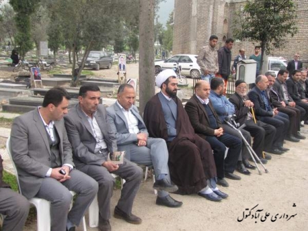به گزارش روابط عمومی شهرداری علی آباد کتول : پنجمین سالگرد درگذشت زنده یاد مهندس محمد تقی دیلم رئیس فقید شورای اسلامی شهر با حضور نوروزی نماینده مردم شهرستان علی آباد کتول در مجلس شورای اسلامی و شریعتی شهردار به همراه  اعضای شورای اسلامی شهر و نماینده اسبق مردم شهرستان علی آباد کتول در مجلس شورای اسلامی و دوستان ، آشنایان در امامزاده الازمن برگزار شد .