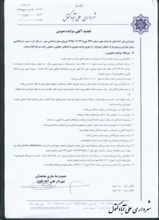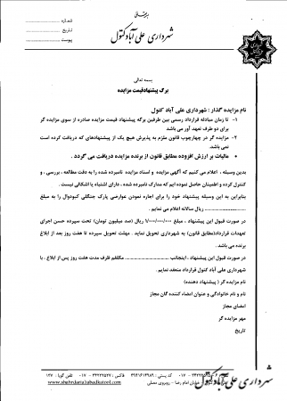 تجدید آگهی مزایده عمومی واگذاري وصول عوارض ورودی پارک جنگلی کبودوال تاریخ : 15 دی 1395 نویسنده : shoorvazi بازدیدها : 1201 نظرات : 0 موضوع : اخبار شهرداری / مزایدات 0 1 2 3 4 5 -.rar [0 b] ( تعداد دانلود: 74 )