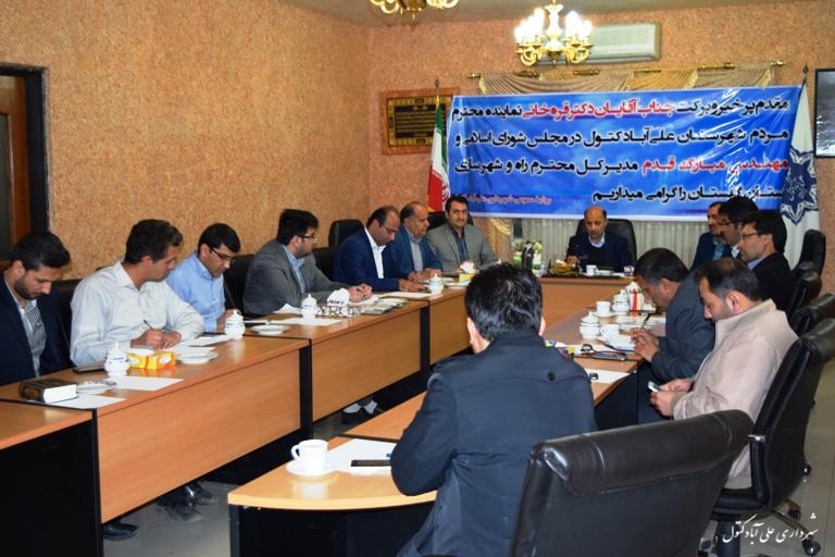 صبح روز پنجشنبه مورخ 19/12/95 با حضور دکترقره خانی نماینده مردم شریف شهرستان درمجلس شورای اسلامی،مهندس مبارک قدم مدیرکل راه و شهرسازی گلستان ،رئیس و اعضای شورای اسلامی شهر و مهندس گرزین مدیراداره شهرسازی علی آبادکتول جلسه مغایرتهای طرح جامع شهر در شهرداری برگزار گردید .