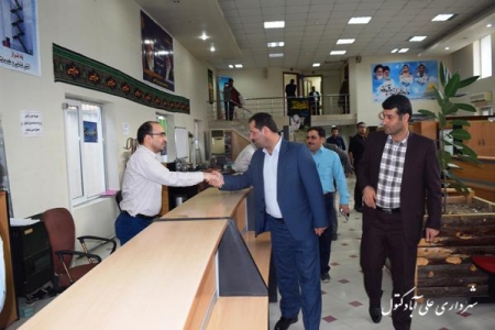 حاج حسن هدایتی فرماندار شهرستان علی آباد کتول در نخستین روز کاری خود به شهرداری علی آباد کتول آمد و از نزدیک با فعالیت واحدهای مختلف این اداره آشنا شد. فرماندار علی آباد کتول در نشستی که با شهردار در دفترش برگزار شد ، بازدید از ادارات ، نهادها و سازمانها دولتی را از اولویت های کاری خود عنوان کرد و به منظور آشنایی با وظایف و ماموریتهای دستگاهها اجرایی و ایجاد روحیه تعامل و همکاری بین کارکنان و هماهنگی مسئولین اجرایی با یکدیگر در جهت اهداف و سیاست های کلی دولت تدبیر و امید میباشد . و بازدید ها بصورت متوالی و متناوب ادامه خواهد داشت.