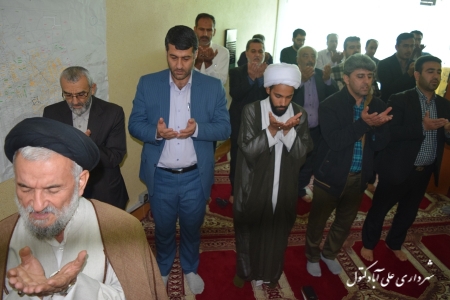 حضور صمیمی امام جمعه شهر علی اباد کتول حضرت حجت السلام والمسلمین حاج اقای مهدی نژاد در شهرداری علی اباد کتول.در این دیدار از واحدهای مختلف شهرداری بازدید و شهردار توضیحاتی ارایه دادند.در پایان نماز ظهر و عصر به امامت امام جمعه محترم با حضور کارکنان اقامه شد.