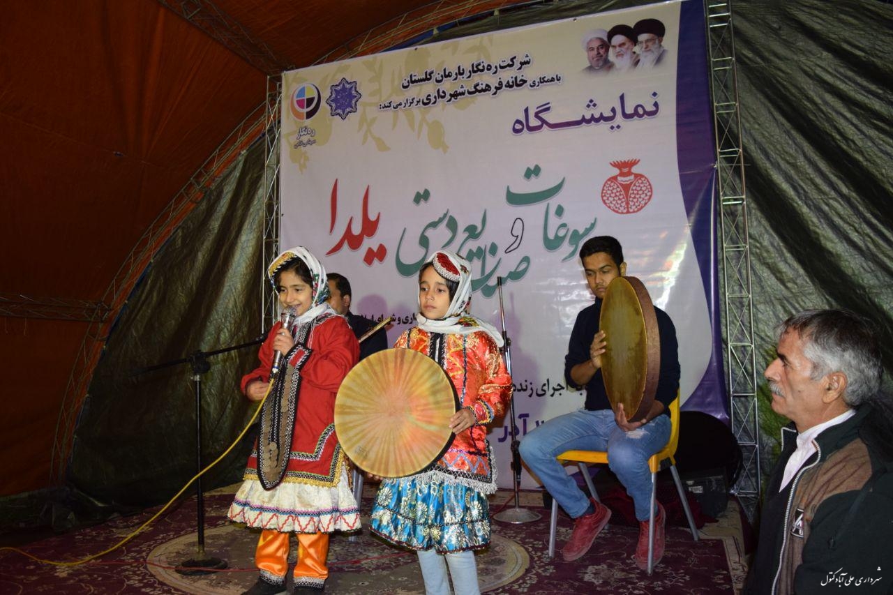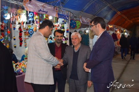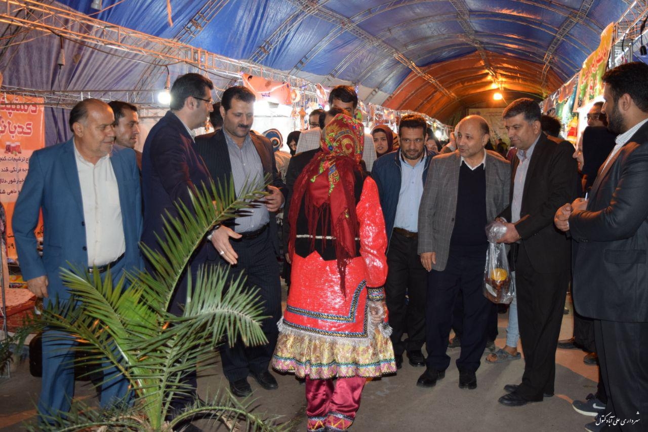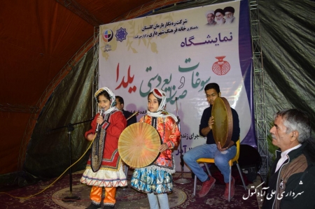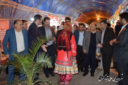 حضور دکتر قره خانی نماینده شهرستان و هدایتی کتولی فرماندار اسفندیاری پور شهردار و اعضا شورای اسلامی شهر و ریس اداره میراث فرهنگی و گردشگری شهرستان در نمایشگاه صنایع دستی و سوغات شب یلدا