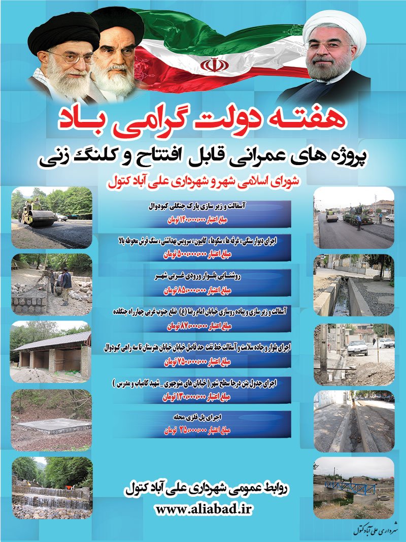 پروژه های عمرانی قابل افتتاح شهرداری علی آباد کتول در هفته دولت