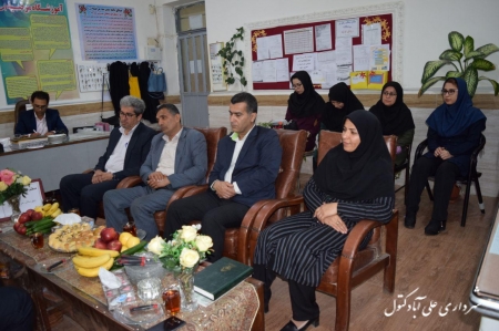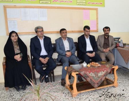 بازدید شهردار و اعضا شورای اسلامی شهر علی اباد کتول به همراه علمشاهی ریس اموزش پرورش شهرستان از مدارس سطح شهر و تجلیل از زحمات فرهنگیان به مناسبت هفته معلم .