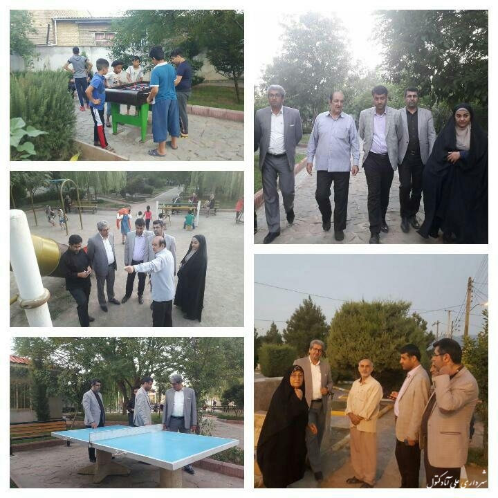 بازدید شهردار و اعضای شورای اسلامی شهر علی آباد کتول از تجهیزات ورزشی و سرگرمی نصب شده در پارکهای سطح شهر ، برنامه ریزی جهت بهبود سیستم روشنایی و کفپوش و فضای سبز پارکها