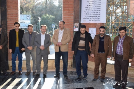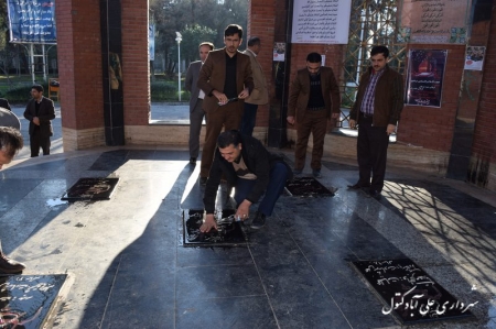گلزار شهدای گمنام علی آباد کتول عطر افشانی شد تاریخ : 15 بهمن 1394 نویسنده : کارشناس 1 بازدیدها : 1589 نظرات : 0 موضوع : اخبار شهرداری / پایگاه بسیج 0 1 2 3 4 5 به گزارش روابط عمومی شهررداری علی آباد کتول : همزمان با آغاز دهه فجر ، گلزار شهدای گمنام غبار روبی و عطر افشانی شد. کارمندان شهرداری با حضور در گلزار شهدای گمنام با آرمان های شهدا و امام شهدا تجدید میثاق کردند.