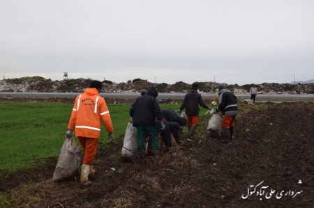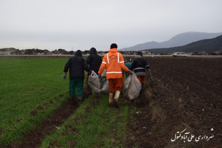 به گزارش روابط عمومی شهرداری علی آباد کتول : صبح امروز به همت مسئول و پرسنل واحد خدمات شهر شهرداری زمین های زراعی اطراف سایت جمع آوری زباله شهرداری از وجود زباله ها پاکسازی شد .