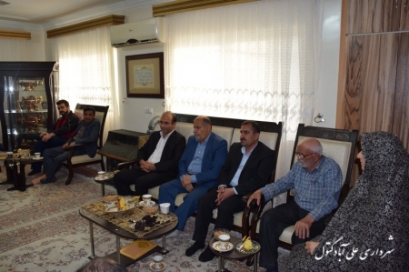 شوروزی مسئول روابط عمومی شهرداری علی آباد کتول گفت : همزمان با آغاز هفته شوراها عصر روز چهارشنبه مورخ 95/02/08 اعضای شورای اسلامی شهر معیت شهردار و تعدادی از مسئولین واحد های شهرداری ضمن حضور در منزل مرحومان حاج غلامرضا ایمانی و مهندس محمدتقی دیلم . از اعضای فقید ادوار شورای اسلامی شهر و دیدار ببا خانواده های آنان با اهدای هدایا و لوح تقدیر از آنان تجلیل نمودند .