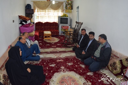 شوروزي مسئول روابط عمومي شهرداري علي آبادكتول گفت: هم زمان با سالروز ميلاد حضرت ابوالفضل (ع) وروز جانباز صبح امروزچهارشنبه مورخ 1395/02/22 اعضاي شوراي اسلامي شهر در معيت شهردار علي آباد كتول ضمن مراجعه به منازل جمعي از جانبازان دفاع مقدس ضمن عرض تبريك روزجانباز واهداء هدايا با آنها ديدار وگفتگو نمودند.