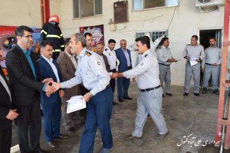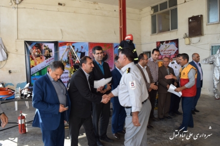به گزارش روابط عمومی شهرداری : فرماندار ، اعضای شورای اسلامی شهر به همراه شهردار علی آباد کتول صبح امروز به مناسبت روز هفتم مهر ماه ، روز شکوهمند ایمنی و آتش نشانی فرصت را مغتنم شمرده؛ به منظور تبریک و قدرداني از زحمات همکاران ارجمند آتش نشانی که جان خود را در طبق اخلاص می گذارند تا به ديگران زندگي دوباره بخشند ، با حضوردر ایستگاه آتش نشانی ضمن بازدید، با تقدیم لوح سپاس به محضر ایثارگرانه این عزیزان از آنان تقدیر و قدر دانی بعمل آوردند .
