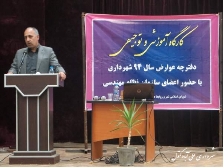 به گزارش روابط عمومی : کارگاه آموزشی و توجیهی یکروزه شورای اسلامی شهر و شهرداری علی آباد کتول با حضور اعضای شورای اسلامی شهر ، شهردار و  اعضای سازمان نظام مهندسی برگزار شد .