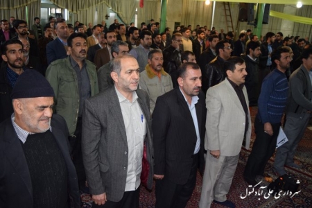 به گزارش شوروزي مسئول روابط عمومی شهرداری علي آبادكتول : صبح امروز شهردار ،رئيس و اعضای شورای اسلامی شهر به همراه جمعي از پرسنل شهرداري در مراسم گرامیداشت حماسه 9 دی درمسجد جامع شرکت کردند