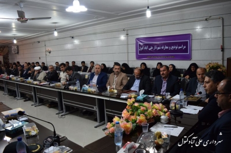 جلسه تودیع و معارفه شهردار علي آبادكتول عصر امروزبا حضور سرپرست دفتر امورشهري وشوراهاي استانداري، امام جمعه ،فرماندار وجمعي از مسئولين استاني وشهرستاني وشوراياران محلات برگزار گردید.