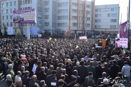 در ادامه قطعنامه راهپيمائي توسط محمد رضا علمشاهي رئيس ستاد اقامه نماز شهرستان قرائت كه با تكبيرهاي حضار مورد تاييد قرار گرفت.
