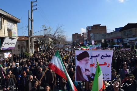 مردم ولایی شهر علي آبادكتول امسال نیز همچون سال های گذشته همراه با سایر هموطنانشان در سراسر ایران اسلامی با حضور در راهپیمایی 22 بهمن ماه، حماسه ای نو آفریدند