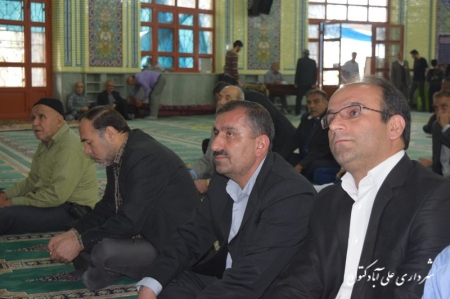 به گزارش روابط عمومی شهرداری علی آباد کتول : ظهر روز جمعه مورخ 95/02/10 حسن صداقت رئیس شورای اسلامی شهر بعنوان سخنران قبل از خطبه های نماز جمعه به بیان گوشه ای از فعالیتهای صورت گرفته عمرانی ، فرهنگی و ورزشی پرداختند .