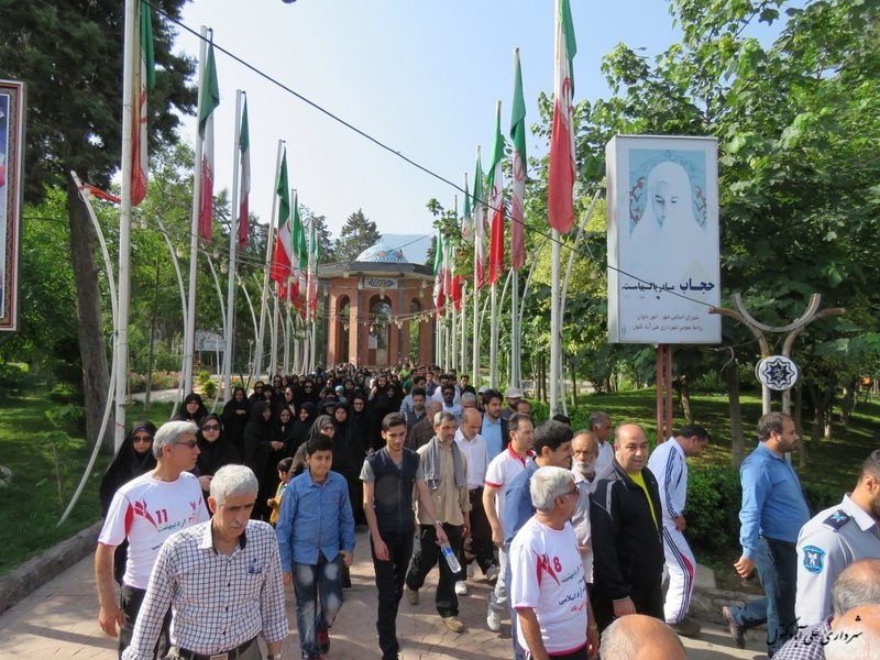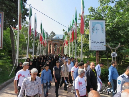 این همایش که با حضور پرشور وگسترده شهروندان همراه بود از محل گلزار شهداي گمنام در پارك انقلاب اسلامي تا گلزار شهدای گمنام دانشگاه آزاد ادامه داشت..