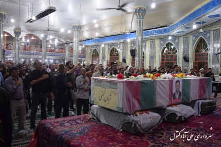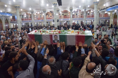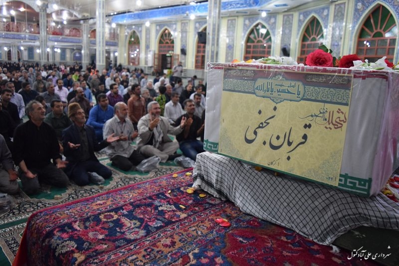 به گزارش روابط عمومی شهرداری علی آباد کتول : جمعه هفتم خرداد ماه 95 مراسم استقبال و شب وداع با اولین شهید مدافع حرم علی آباد کتول معلم بسیجی شهید قربان نجفی خان به بین در مصلی امام رضا (ع) شهرستان علی آباد کتول استان گلستان با حضور اعضای شورای اسلامی شهر ، پرسنل شهرداری ، مسئولین بنیاد شهید و امور ایثارگران استان و شهرستان ، مسئولین استانی و شهرستانی ، فرماندهان نیروهای مسلح ، جمعی از علما ، خانواده های معظم شاهد و ایثارگر و مردم شهید پرور و ولایت مدار شهرستان علی آباد کتول برگزار شد.