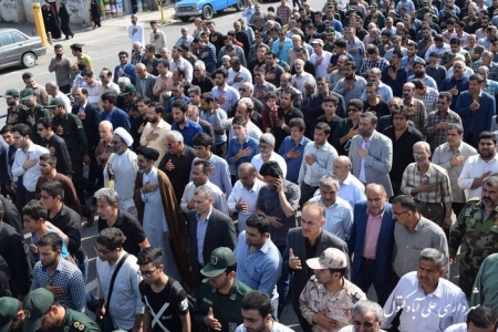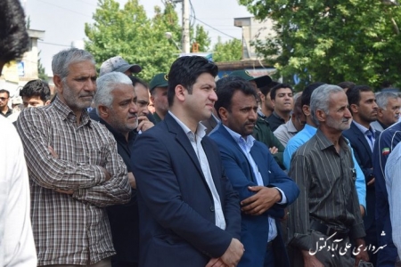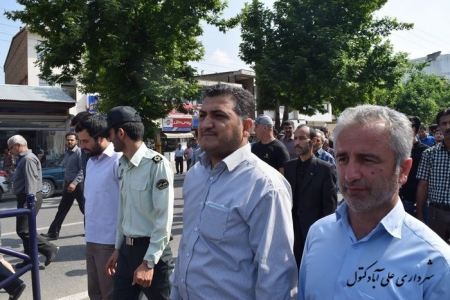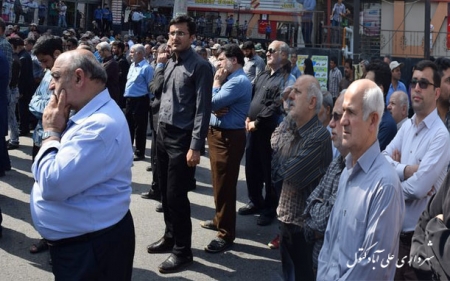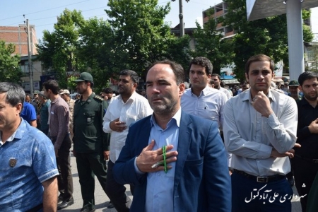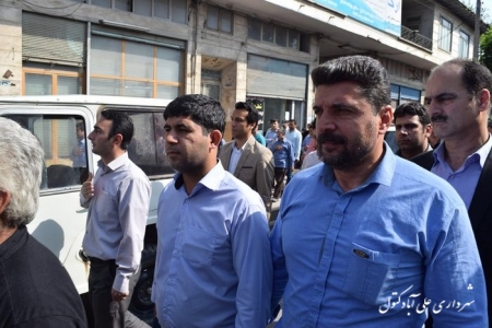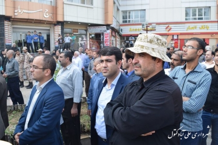 به گزارش روابط عمومی شهرداری علی آبادکتول : آیین تشییع پیکر مطهر شهید حاج قربان نجفی خان به بین با حضور رئیس و اعضای شورای اسلامی شهر ، شهردار ، پرسنل شهرداری و شماری از مسئولان ادارات، روحانیان، خانواده معظم شهدا و ایثارگران، بسیجیان، نیروهای نظامی و انتظامی و مردم این شهرستان روز شنبه 95/03/08 برگزار شد.
