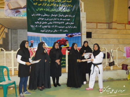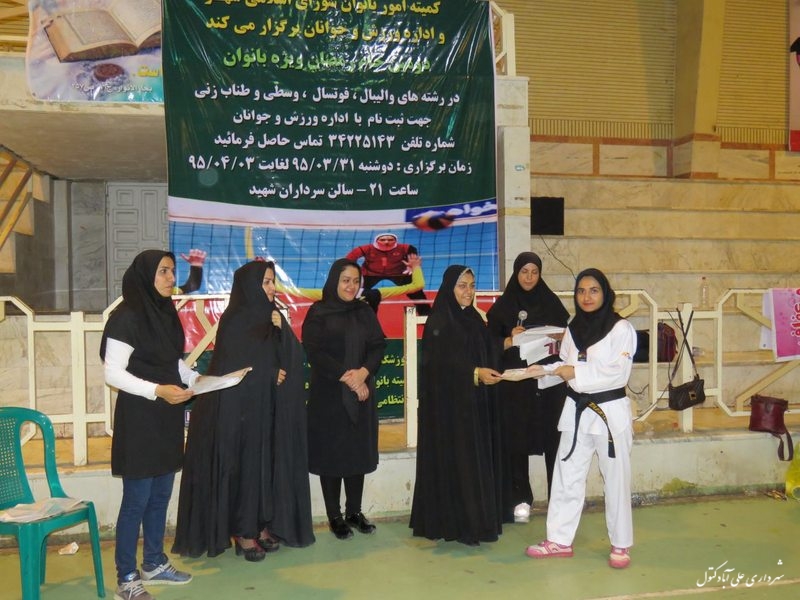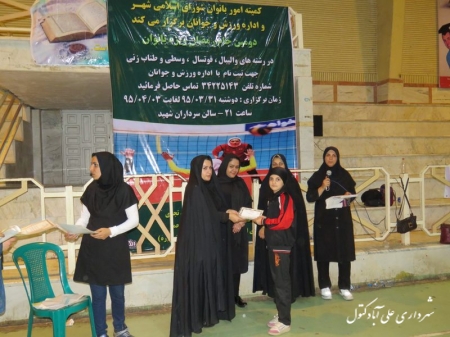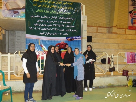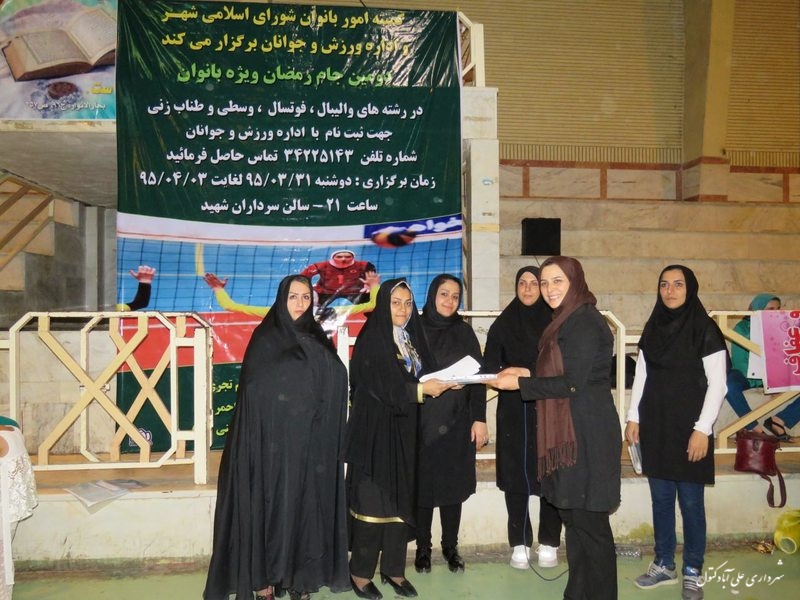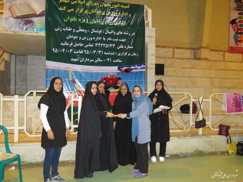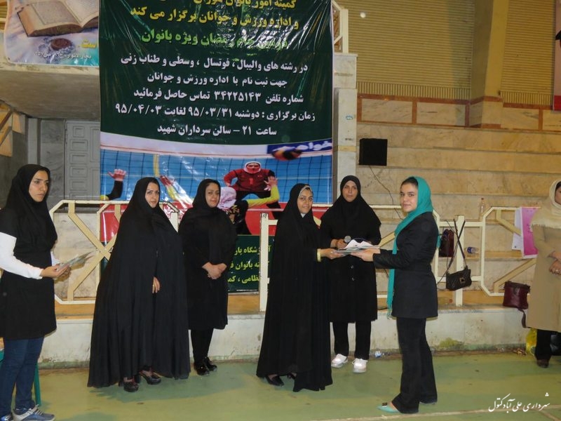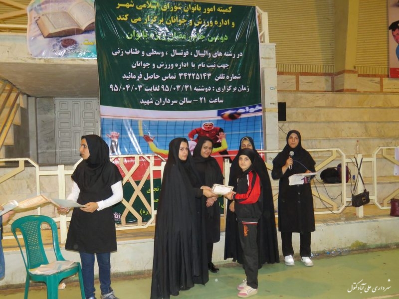 به گزارش روابط عمومي شهرداري علي آبادكتول : مراسم اختتاميه دومين دوره مسابقات جام رمضان ويژه بانوان شامگاه روز چهارشنبه مورخ 1395/04/02 در سالن سرداران شهيد علي آبادكتول برگزار شد .