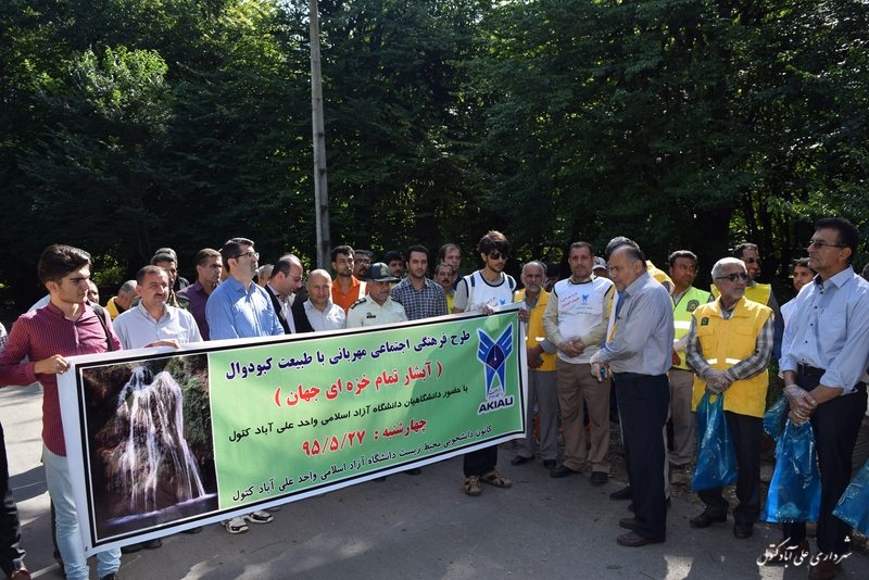 حسن صداقت رئيس شوراي اسلامي شهر علي آبادكتول گفت:  این حرکت با همکاری شوراي اسلامي شهر، شهرداري ،كانون دانشجوئي محيط زيست دانشگاه آزاد اسلامي ، اداره منابع طبيعي،محيط زيست وجمعيت هلال احمر علي آباد كتول در تفرجگاه كبودوال برگزار گرديد .