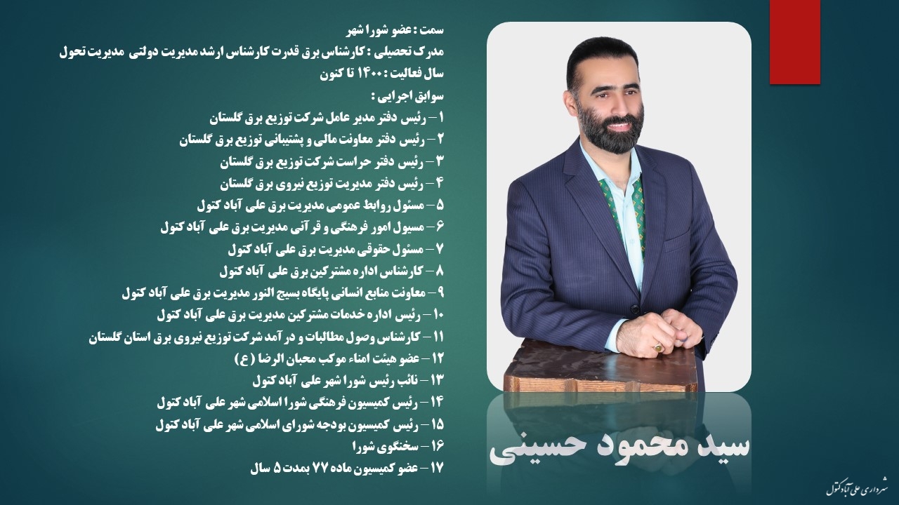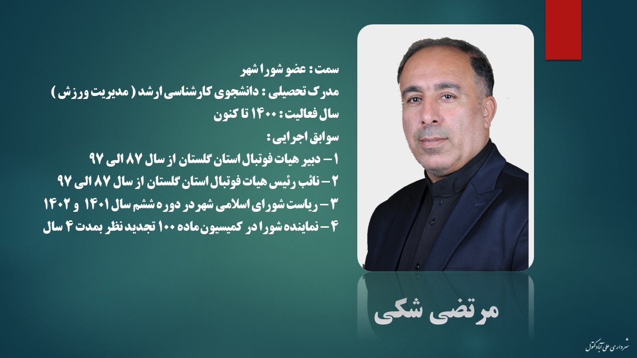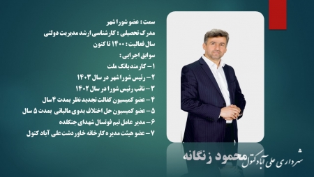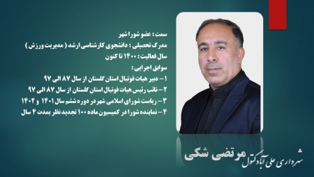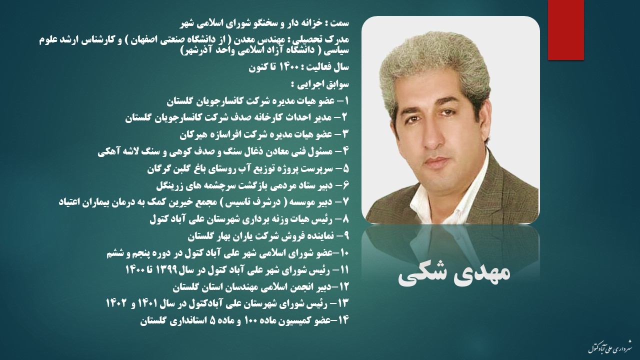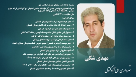 اعضای شورای اسلامی شهر علی آبادکتول در دوره ششم تاریخ : 16 آذر 1404 نویسنده : کارشناس شورا بازدیدها : 46 نظرات : 0 موضوع : شورای اسلامی شهر 0 1 2 3 4 5
